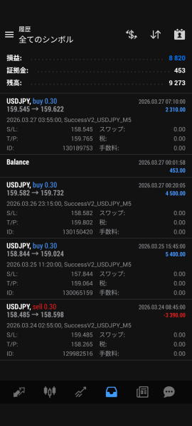 2026年運用成績累計   SuccessV2 34,296円  S-Follower -5,559円  (2026.3.31現在) 【まとめのページへ】